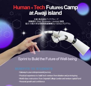 2026年2月26日~28日、主催:株式会社パソナグループ(授業提供:SNA Strategic Limited/Hong Kong)、協力:大阪大学全学教育推進機構OU-SDGs プログラムにより、大阪大学の学生を対象として、研修プログラム「AI 活用/起業家精神を学ぶ『Human+Tech Futures Camp』」を実施します。